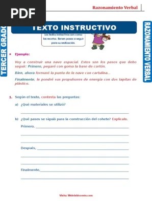 Los textos instructivos o normativos son aquellos que dan al lector las . Son ejemplo de textos instructivos las recetas de cocina, las reglas de un . Ejemplo de texto instructivo corto (para niños de primaria). Nos muestran pasos a seguir, materiales y como lo dice su .